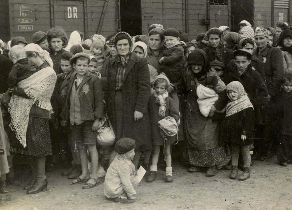 Cette photo est l’une des seules preuves visuelles du processus de massacre de masse à Auschwitz- Birkenau. Elle a été prise pendant entre mai et août 1944, lors de l’arrivée de juifs hongrois au camp de concentration et d’extermination alors commandé par Rudolf Höss. Ce dernier avait demandé à deux SS de photographier l’arrivée des convois, la descente du train et le processus de “tri” afin de rassurer Adolf Eichmann sur l’efficacité de l’organisation qu’il avait mise en place. 193 photos, soigneusement classées dans un album, seront retrouvées par Lili Jacob, une déportée, à la libération du camp.